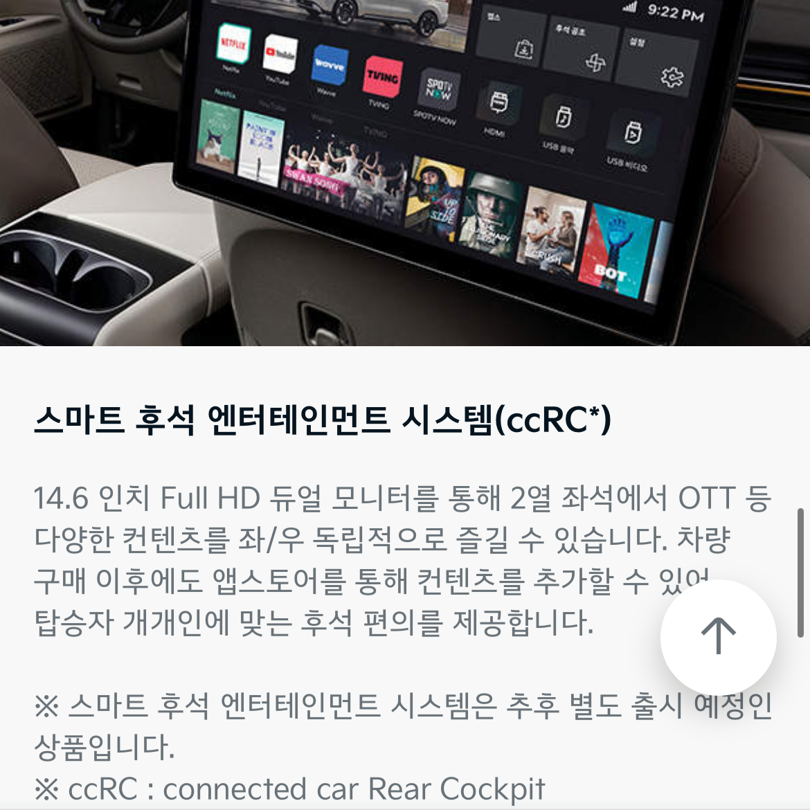 21.5인치 후석 스마트 모니터 OTT 서비스 적용...