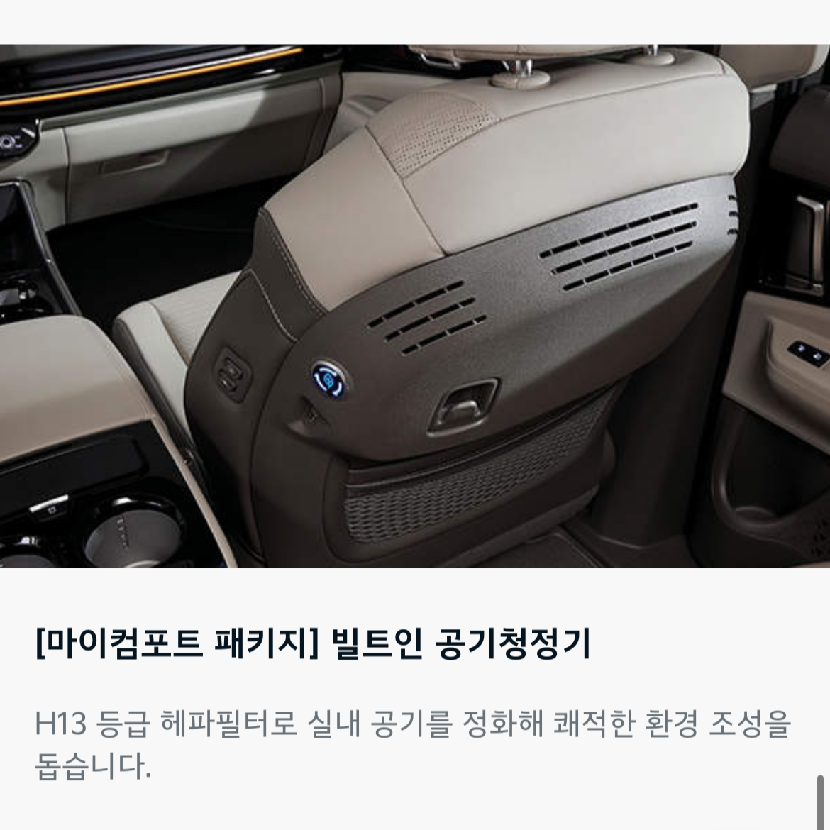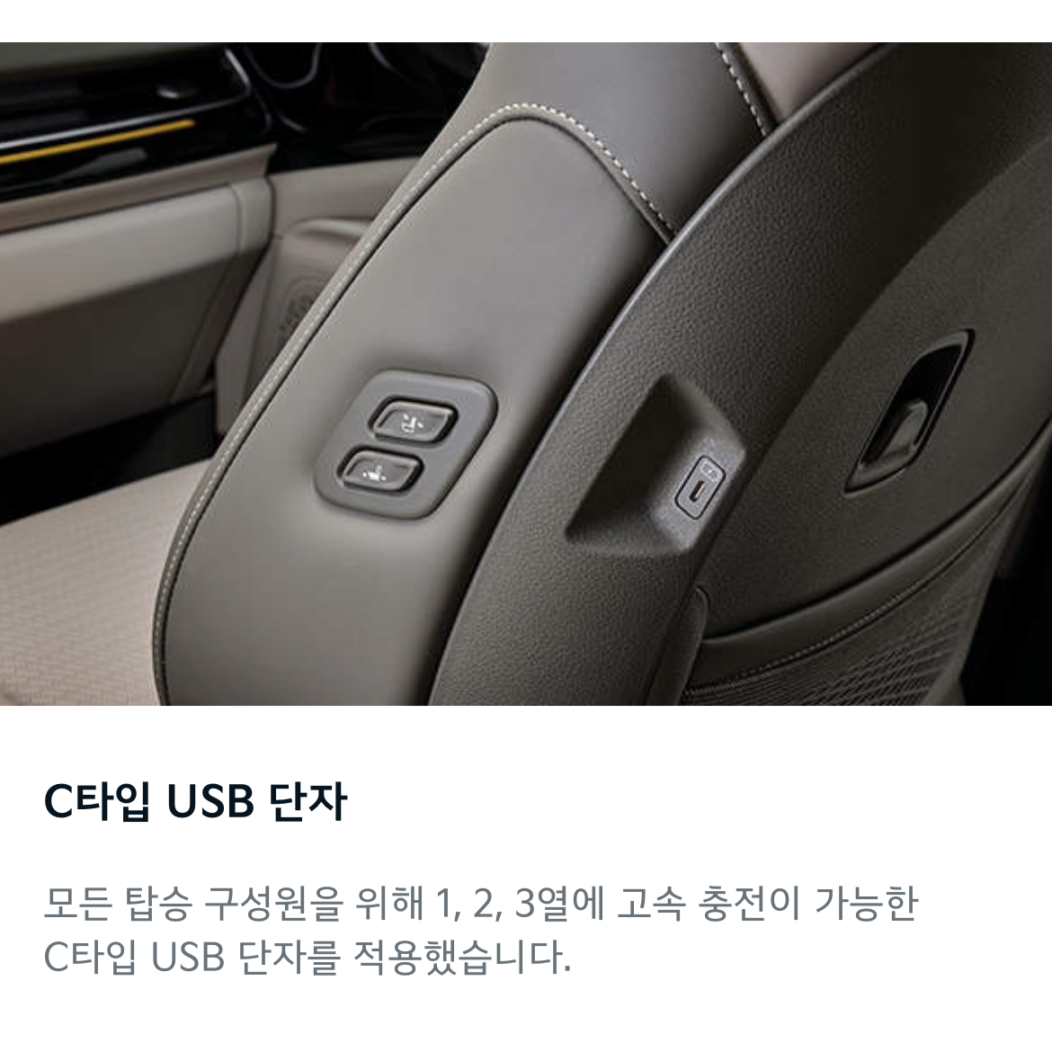 - 옵션 : LED 헤드램프, 슈퍼롱 슬라이드 2열 시트, 11.6인치 디스플레이 등